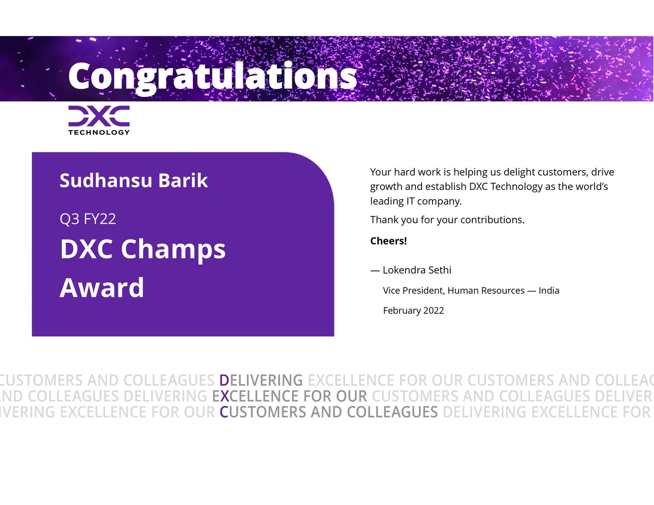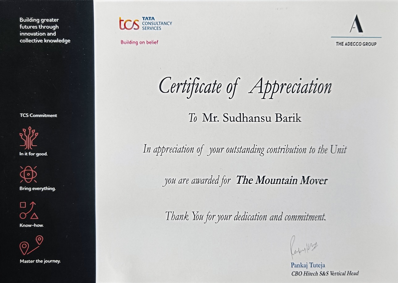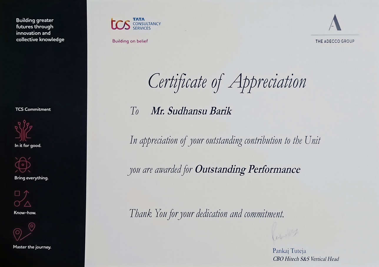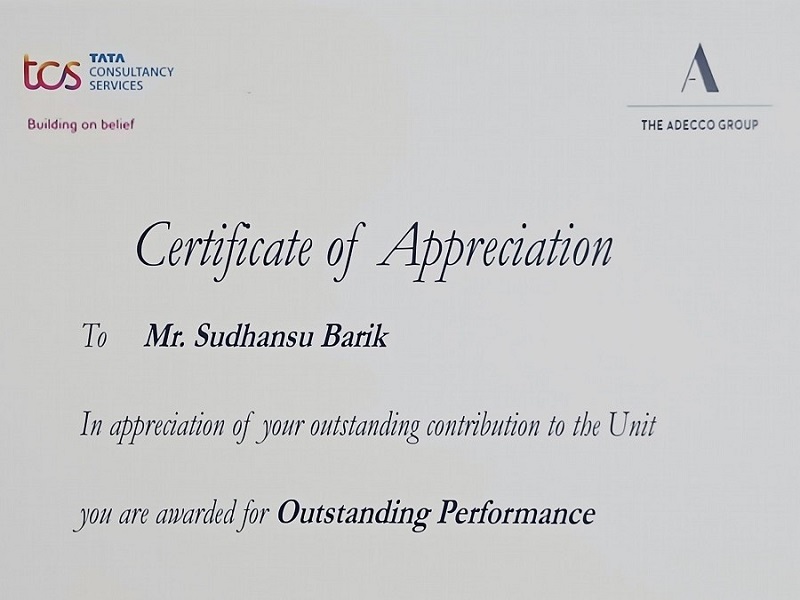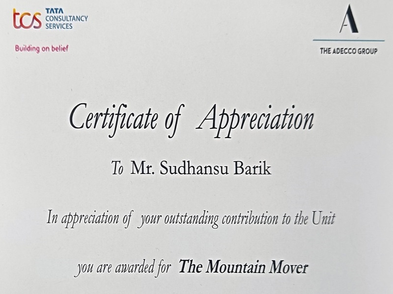 Listed below are some appreciations and recommendations that I have received from my peers, collegues, clients, supervisors and managers.